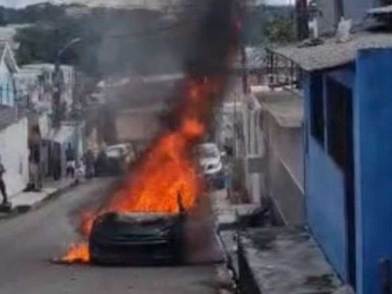 Veja momento que carro pega fogo em Manaus