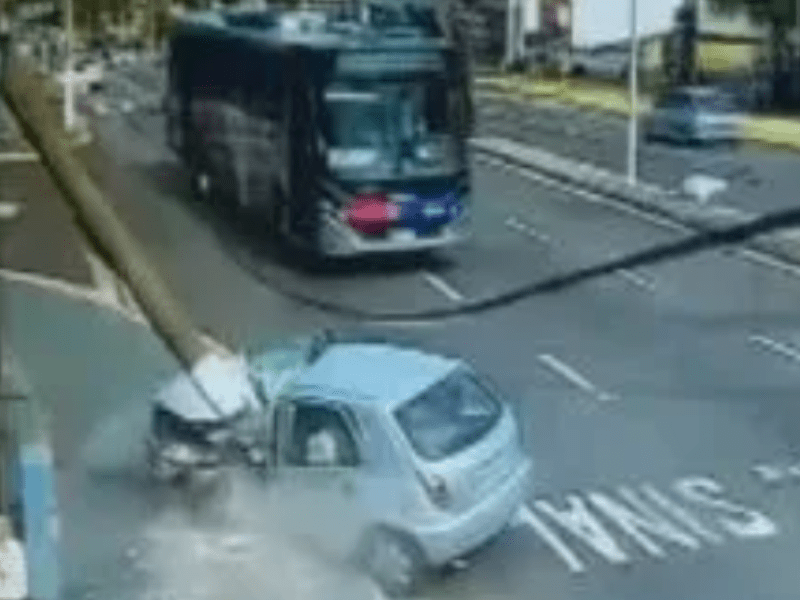 Uma mulher de 26 anos protagonizou uma cena de risco ao fugir de uma blitz policial pela contramão, tentar atropelar um agente e colidir violentamente contra um poste