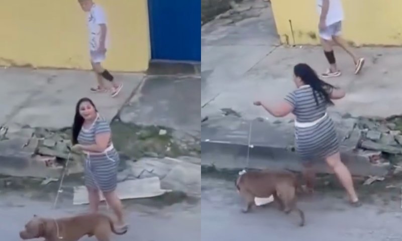 Um vídeo que circula nas redes sociais mostra o momento em que um pitbull ataca e mata um gato no bairro Vale do Sinai