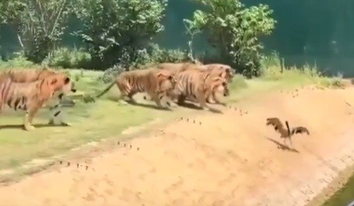 VÍDEO: Pássaro voa em direção à morte e é esquartejado por 7 tigres