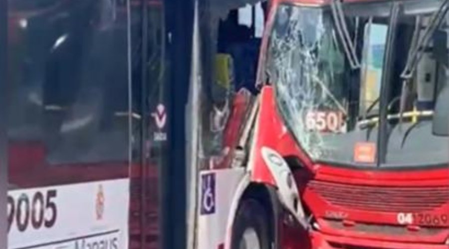 VÍDEO: Colisão entre dois ônibus paralisa Terminal T5 em Manaus