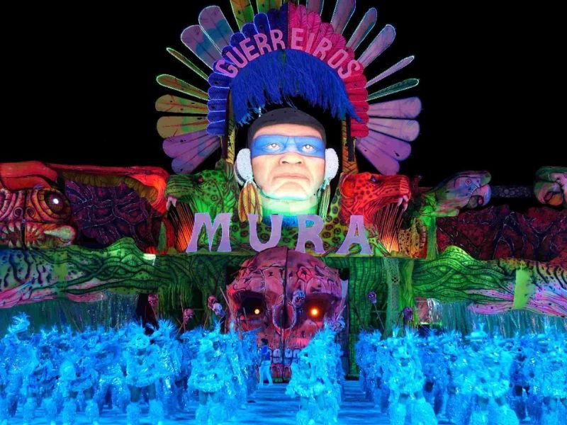 Com alegorias gigantes e iluminadas, a apresentação recriou o ambiente do fundo dos rios