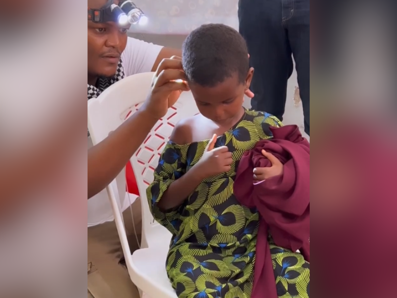 Vídeo apresenta emoção de Nestayha ao ouvir novamente. Entidades internacionais promovem distribuição de equipamentos no Quênia.