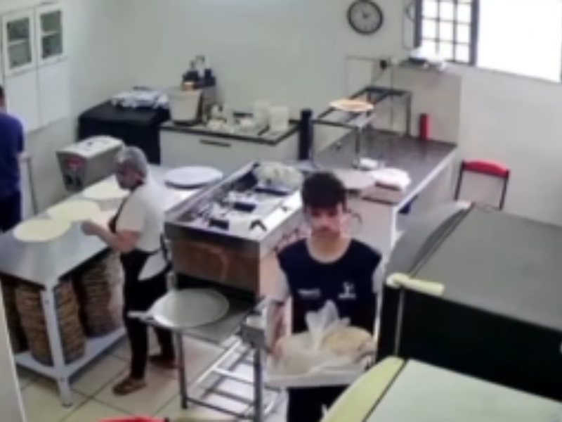 VÍDEO: incêndio destrói pizzaria com família trabalhando na cozinha