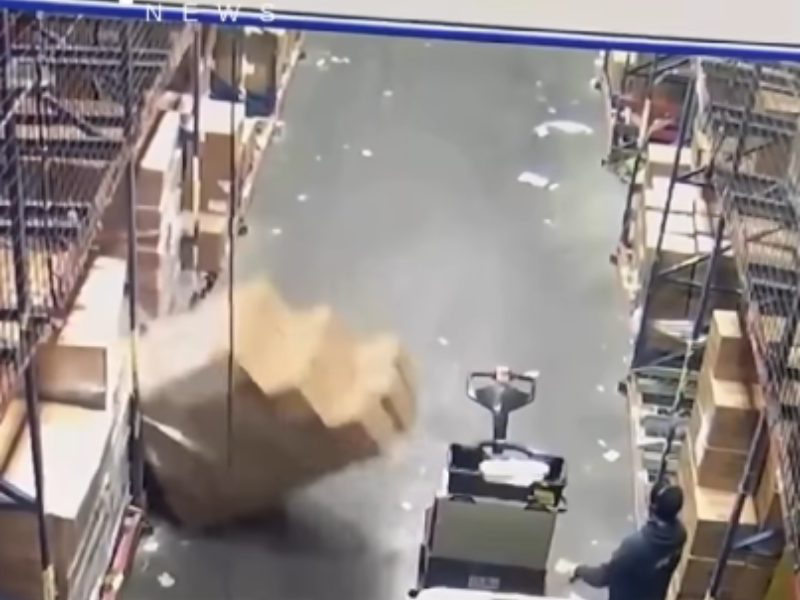 Funcionário tenta forjar acidente no trabalho e acaba flagrado por câmeras de segurança da empresa.