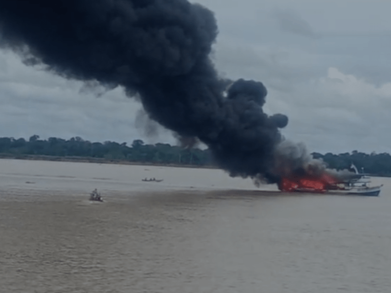 AMAZONAS – Um barco carregado com gasolina e diesel pegou fogo no meio do rio após sair do município de Codajás, em um incidente que aconteceu nesta quinta-feira (29), no trecho entre os municípios de Anamã e Anori, no interior do Amazonas, durante transporte de combustível pela região. A embarcação de grande porte foi consumida por chamas de grandes proporções enquanto navegava, gerando coluna de fumaça visível à distância. Até o momento, não há informações oficiais sobre feridos ou mortos no incidente.