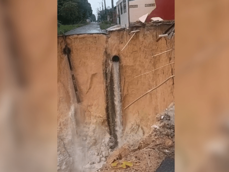 MANAUS – Novos registros feitos por moradores mostram o avanço de uma cratera no conjunto Canaranas, na zona Norte de Manaus, em área já marcada pela morte da líder comunitária Sammya Maciel, de 45 anos, em 19 de março de 2025. As imagens mais recentes, feitas na rua Ladário, exibem grande volume de água descendo pelo barranco e a formação de uma espécie de “cachoeira” dentro da estrutura de esgoto, o que evidencia intensificação do processo erosivo e risco para casas próximas.