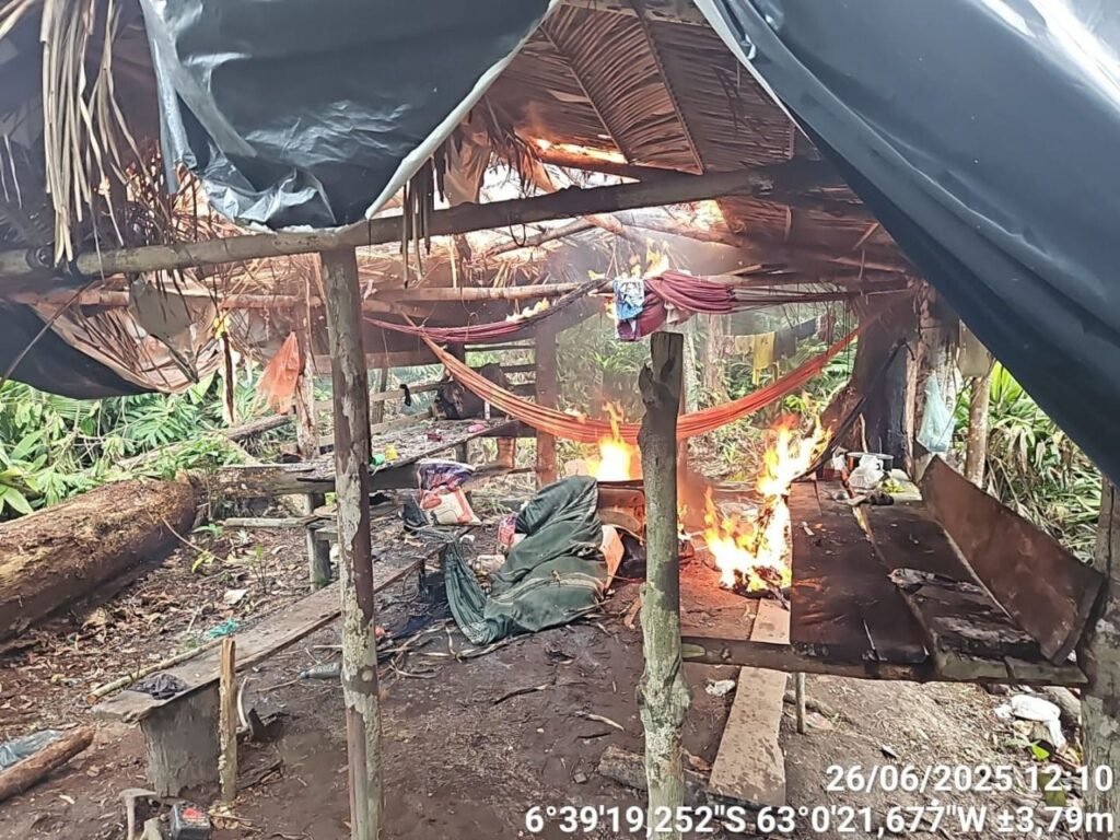 Durante a fiscalização, os agentes ambientais localizaram um acampamento improvisado com estrutura para abrigar até dez pessoas, utilizado como base para construção de cercas e currais. Segundo o Ipaam, há indícios de atuação de grupos criminosos organizados que utilizam notas fiscais e guias de transporte animal (GTAs) falsas para manter ilegalmente cerca de mil cabeças de gado na reserva estadual.