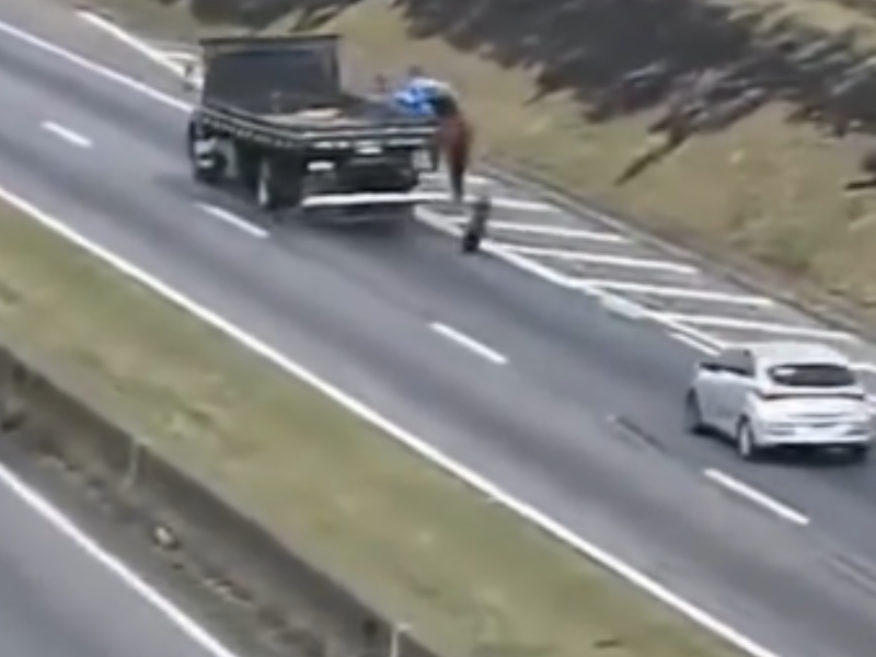 Romerio é atingido por pneu durante caminhada na Dutra e escapa sem ferimentos. Vídeo mostra acidente durante romaria de fiéis ao Santuário de Aparecida.