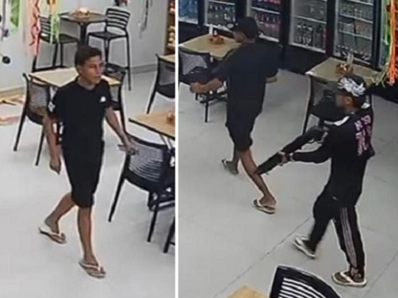 O assalto aconteceu na madrugada deste sábado (21). Câmeras de segurança gravaram toda a ação dos suspeitos vestidos de preto.