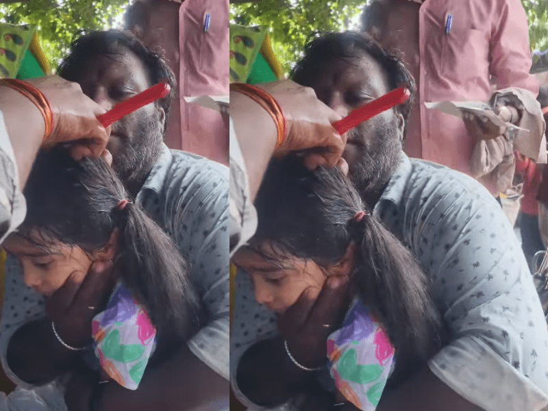 ÍNDIA – Um vídeo publicado em redes sociais mostra uma menina tendo o cabelo raspado enquanto está visivelmente constrangida. O contexto permanece incerto: não está claro se o ato se relaciona a motivos religiosos, culturais ou econômicos, como a venda de fios.