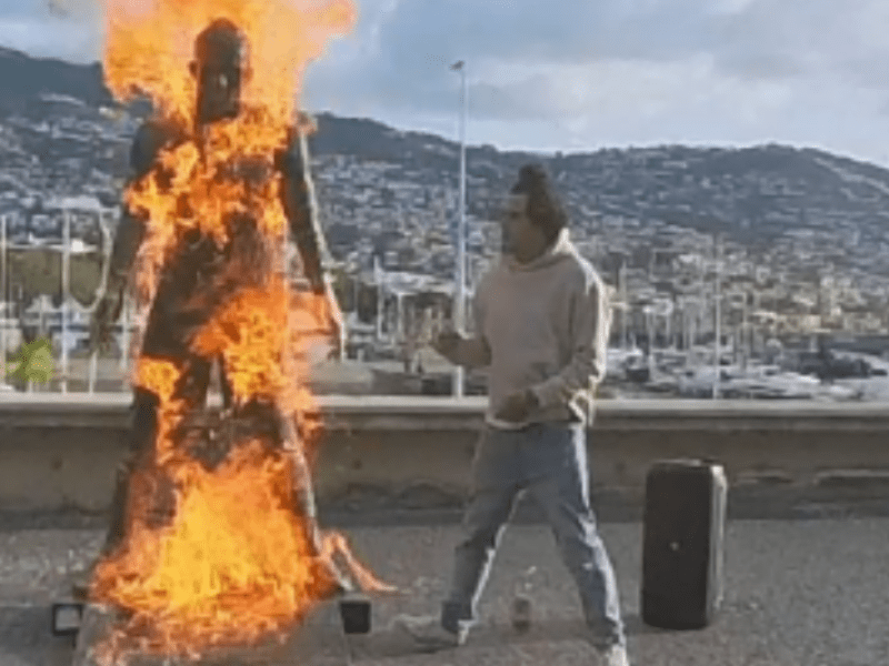 MUNDO – Um homem ateou fogo à estátua de Cristiano Ronaldo instalada em frente ao Museu CR7, em Funchal, em ato registrado em vídeo e publicado nas redes sociais com uma mensagem direcionada ao jogador. O autor do incêndio aparece nas imagens ao despejar um líquido inflamável sobre a base da escultura, acender o fogo e permanecer diante da peça enquanto as chamas se espalham. O caso aconteceu nesta terça-feira (20), na Avenida do Mar, área de grande circulação de moradores e turistas na capital da Ilha da Madeira, em Portugal.