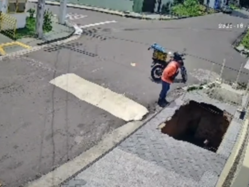 Veja o momento em que adolescente é surpreendido por cratera em Manaus