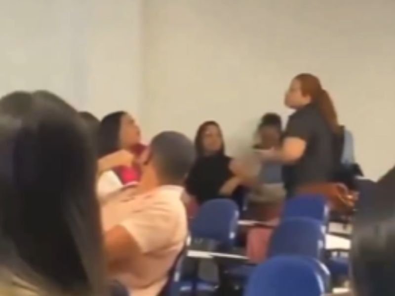 As imagens mostram o momento em que as duas mulheres trocam insultos