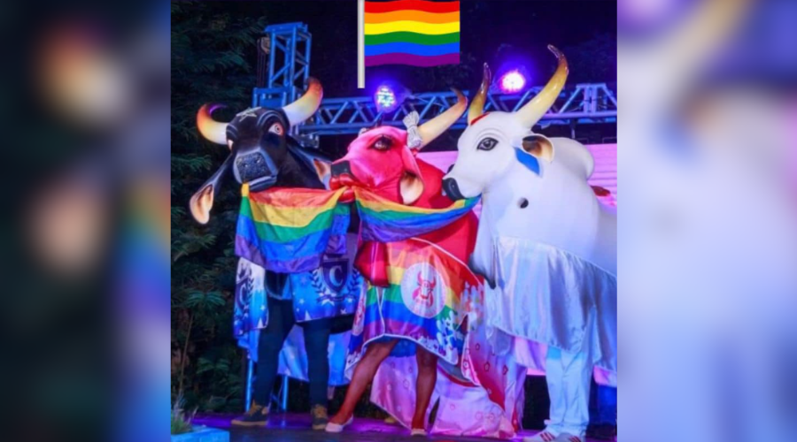 Batom vermelho, salto alto e cílios longos; é assim que o boi desfila pela Ilha Tupinambarana, carregando sempre a bandeira da inclusão.