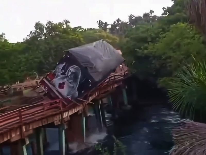 VÍDEO: Ponte de madeira desaba com caminhão e cai no rio