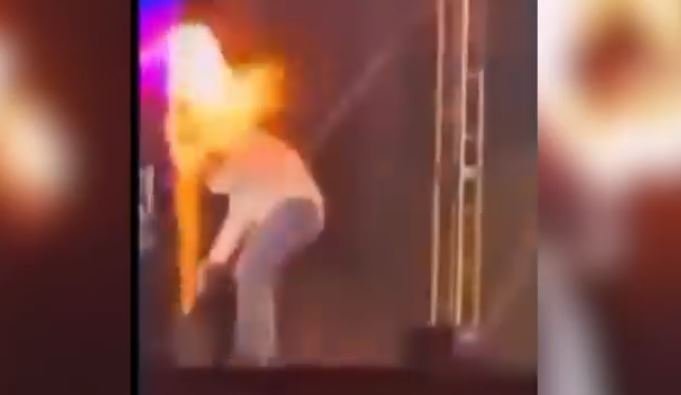 VÍDEO: cantor sertanejo é atingido por jato de fogo durante show