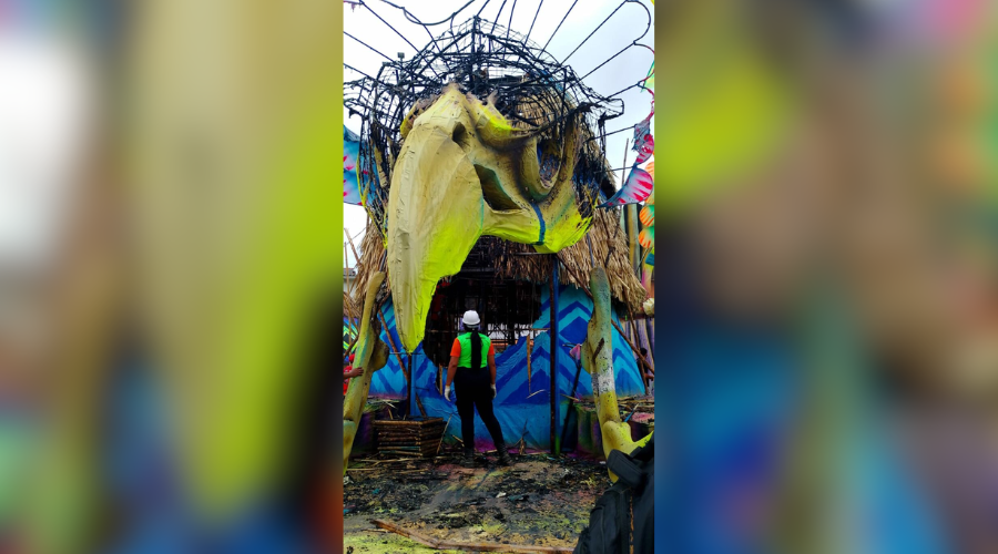 Fogo danificou uma parte de alegoria do Caprichoso durante montagem; não há registros de feridos no incidente.