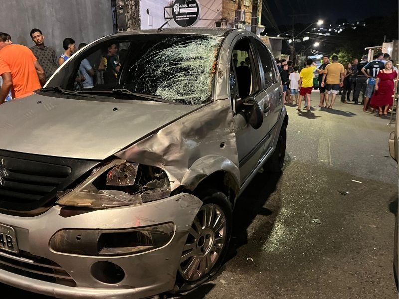 Registro mostra momento em que veículo desgovernado capota sobre pedestre, que escapa sem ferimentos no bairro Compensa, zona oeste de Manaus.