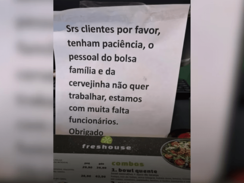 Restaurante em SP culpa Bolsa Família e “cervejinha” por falta de funcionários