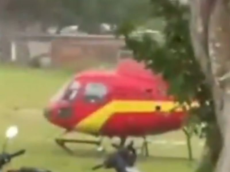Helicóptero com paciente em estado grave pousa em campo de futebol