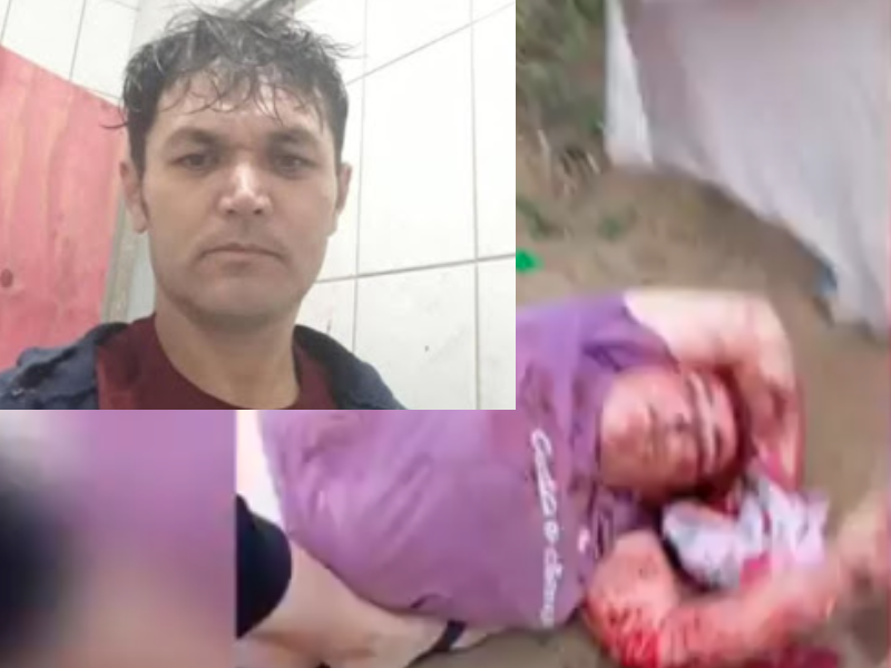VÍDEO: homem espanca esposa com pá na frente de filho e foge