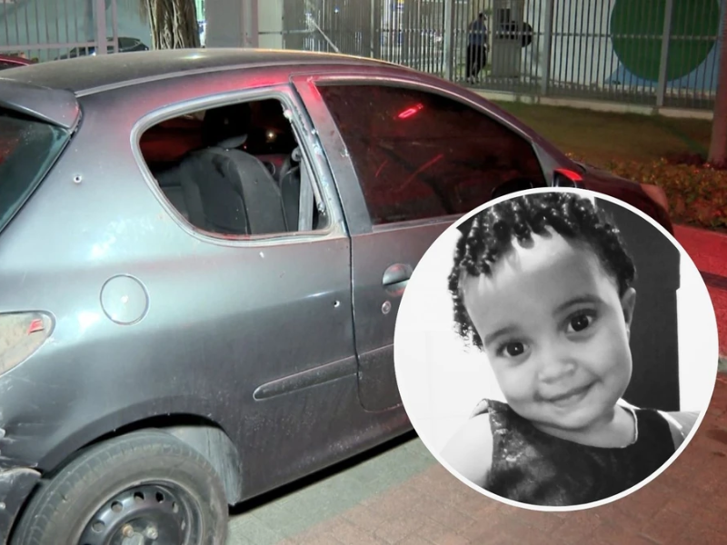 Menina foi baleada dentro do carro durante confronto de criminosos no domingo (24). Mãe, grávida de oito meses, e pai sofreram ferimentos leves; ambos socorridos.