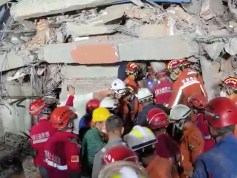 Vídeo mostra momento dramático do resgate de Daw Khin, encontrada consciente sob escombros na capital Naypydaw