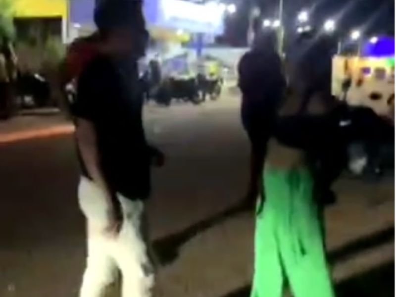 Um vídeo gravado por testemunhas mostra o momento em que a discussão entre homens e mulheres se transforma em pancadaria.