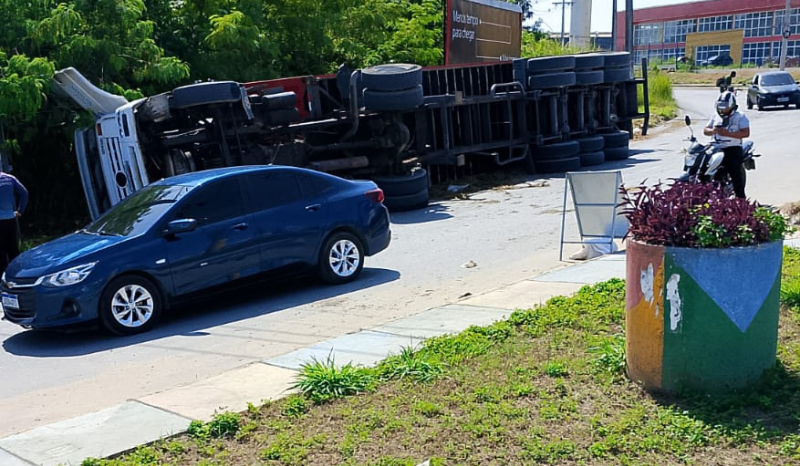 Carreta tomba e interdita parte de estrada da Zona Leste em Manaus